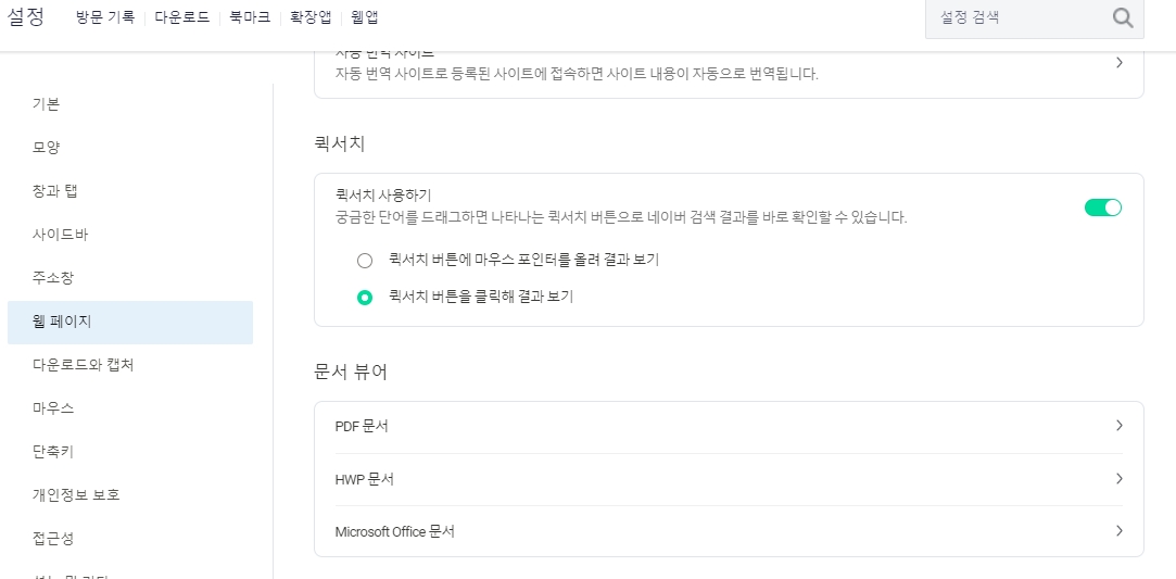 그런데 웨일 자체 문서뷰어 말고 내 컴퓨터에 설치된 한글 프로그램으로 열고 싶을때가 훨씬 많습니다. 더 익숙하기도 하고 편집이 필요할 수 도 있구요.