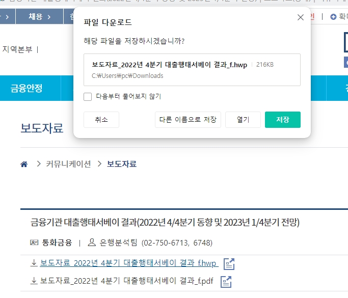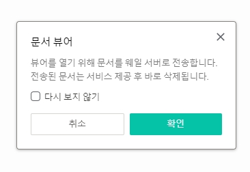 네이버 웨일을 자주 씁니다. 그런데 어디 웹페이지에 있는 첨부파일을 누르면 '취소', '다른 이름으로 저장', '열기', '저장' 이렇게 나와서 '열기'를 누르면 웨일 자체 문서 뷰어로 웨일 창에서 문서가 열립니다.