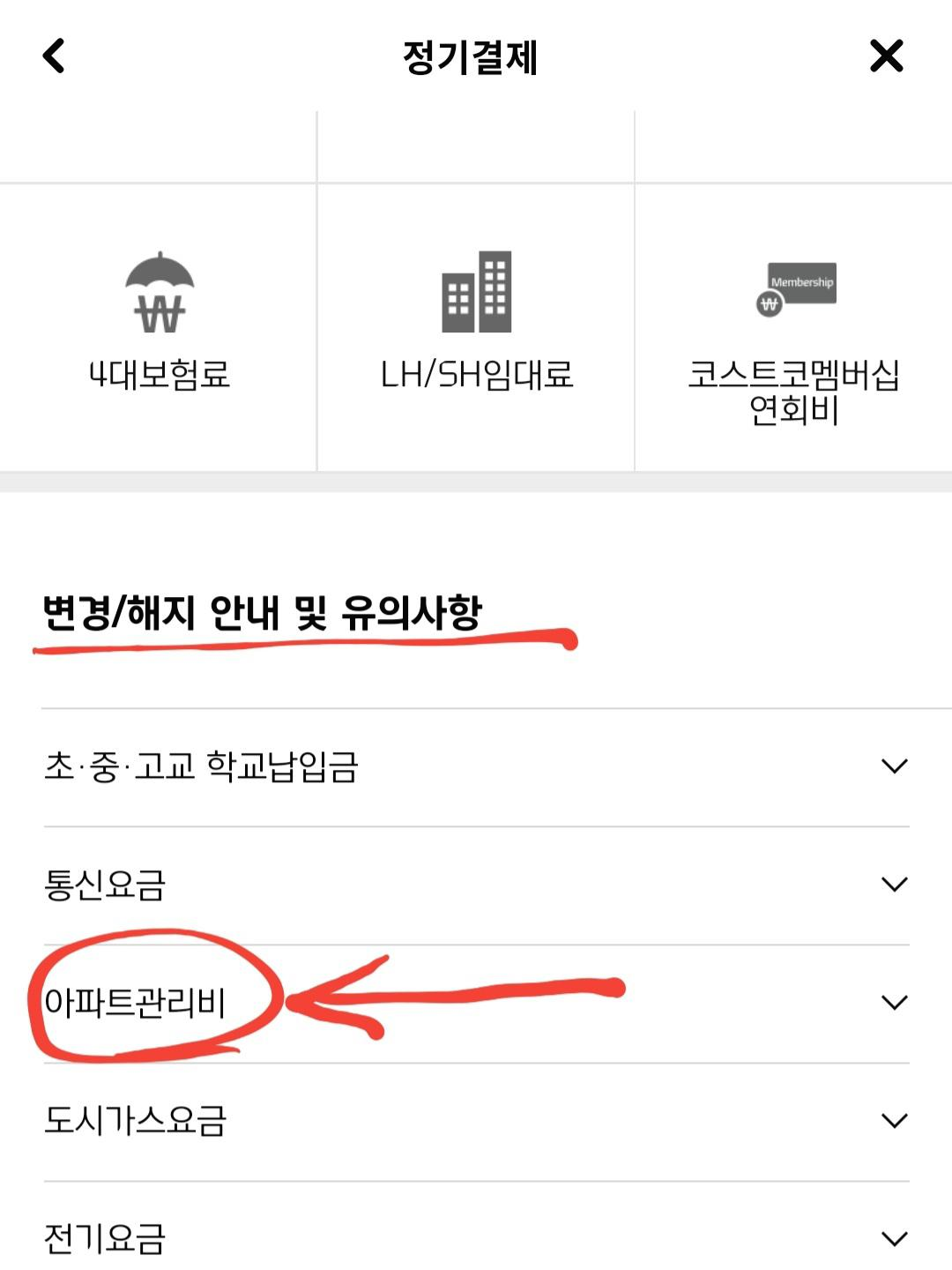 그런데 그 화면에 밑으로 조금 스크롤을 내리시면 아파트관리비 항목이 보입니다.