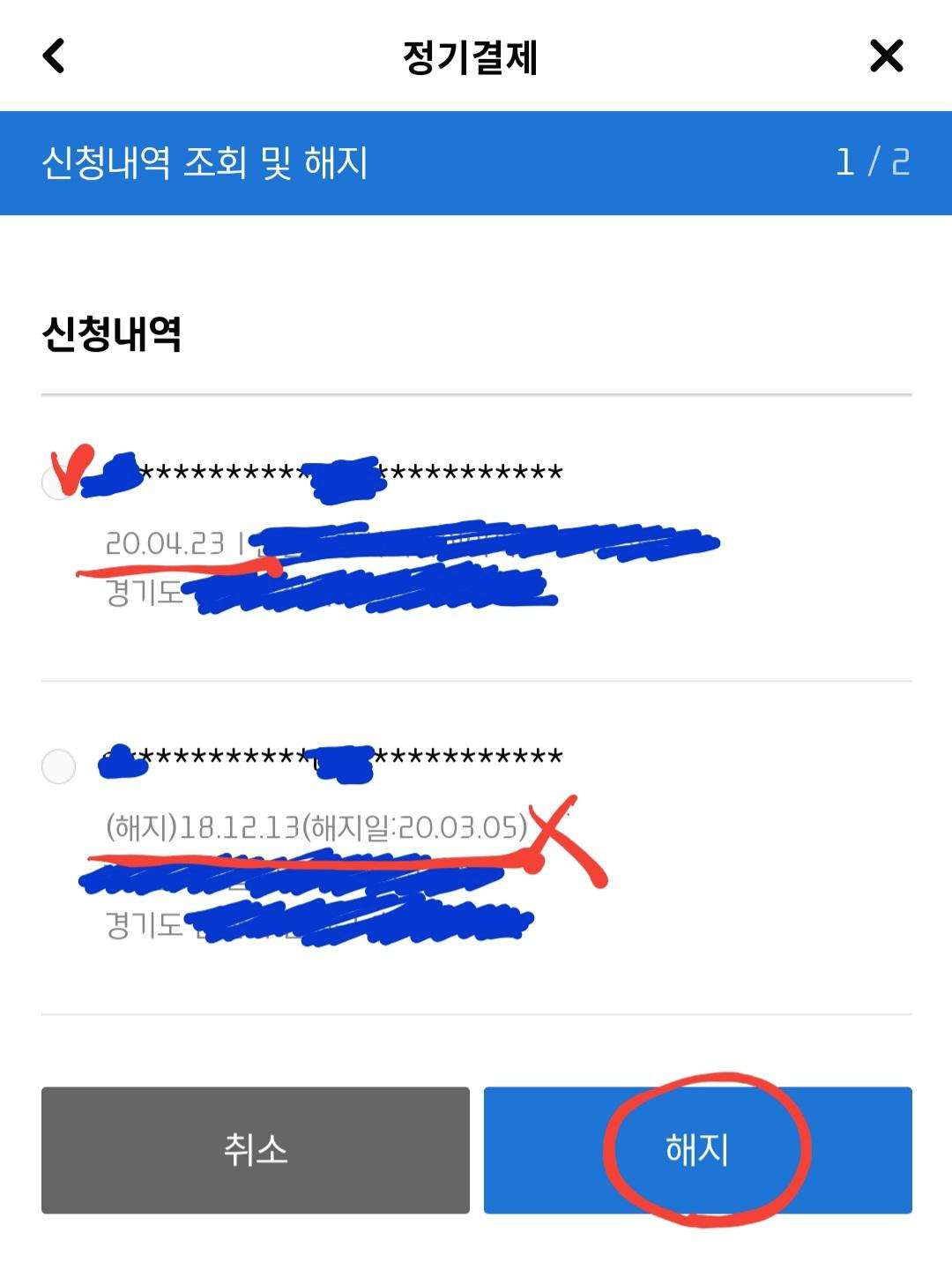정기결제 신청과 변경메뉴가 있는데 변경 눌러주시구요.