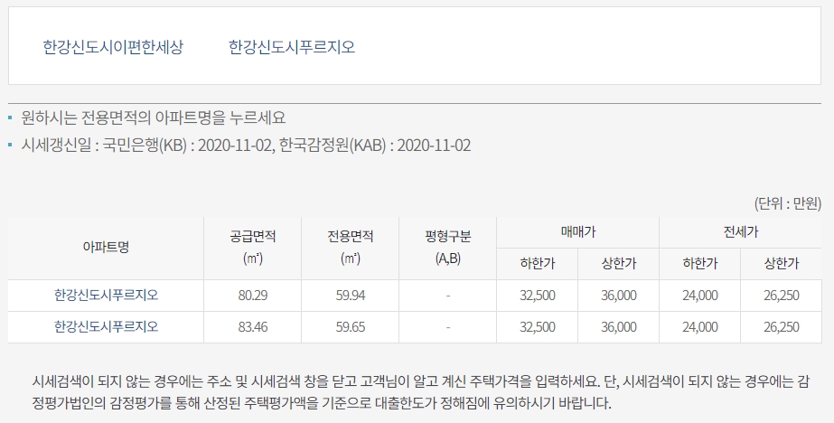 표시화면 구성은 이렇습니다. (feat. 김포 운양동 한강신도시푸르지오 KB시세 )