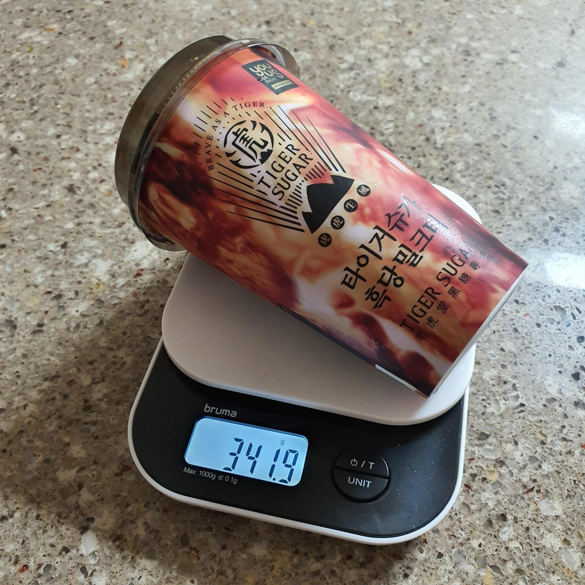 어 이러면 타이거슈가 흑당밀크티가 300ml가 아니라 조금 더 들어있다는건데 밀크티가 혜자인건지 저울이 오차가 큰건지?? 무게가 정확한 제품을 찾아봐야겠습니다.