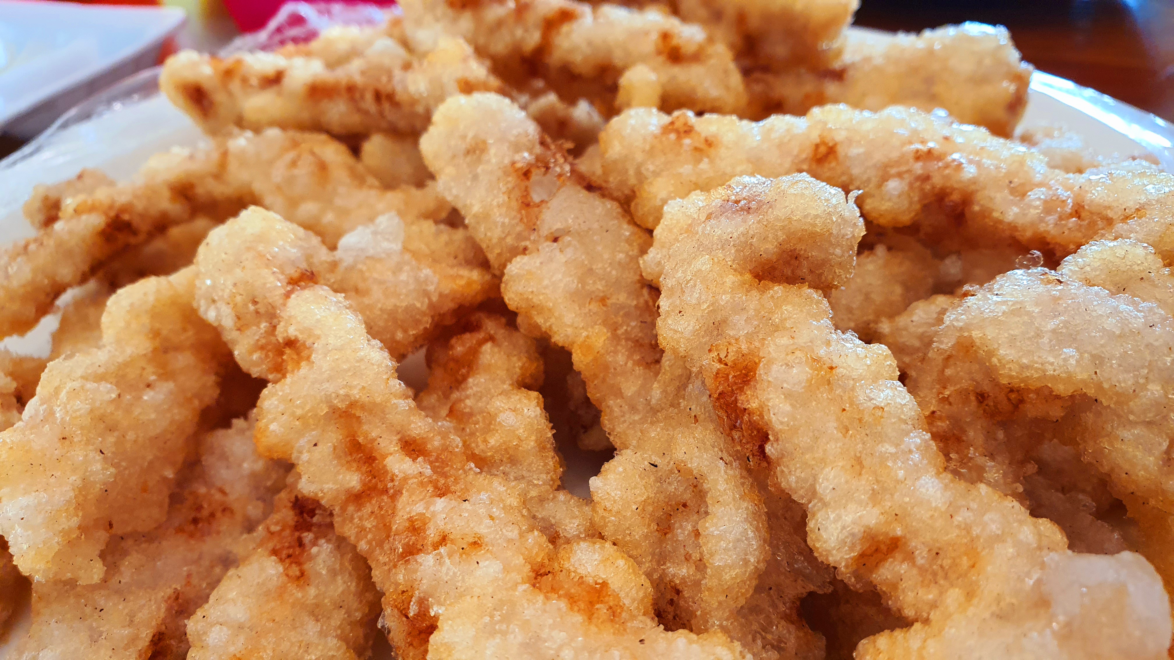 순백색의 찹쌀탕수육하고는 다른 노릇한 비주얼을 보여주는 전통의 탕수육입니다.