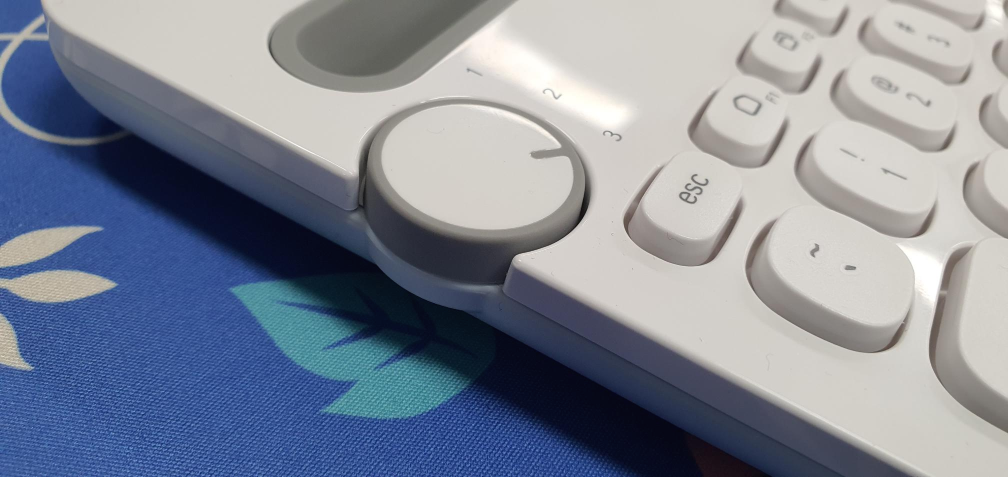 기기간 전환을 해주는 다이얼입니다. k480은 완전 블루투스 키보드라서 수신기를 주지 않고요. 1, 2, 3 모두 블루투스기기와 페어링 됩니다. 다이얼을 돌리는 것만으로도 바로바로(?) 전환이 되네요.