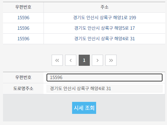 위와 같이 나온 검색에서 해양4로 31을 선택해봅니다. 그랑시티자이아파트 1차인데요. 주소 선택하고나면 아래쪽에 시세 조회 버튼이 보입니다.