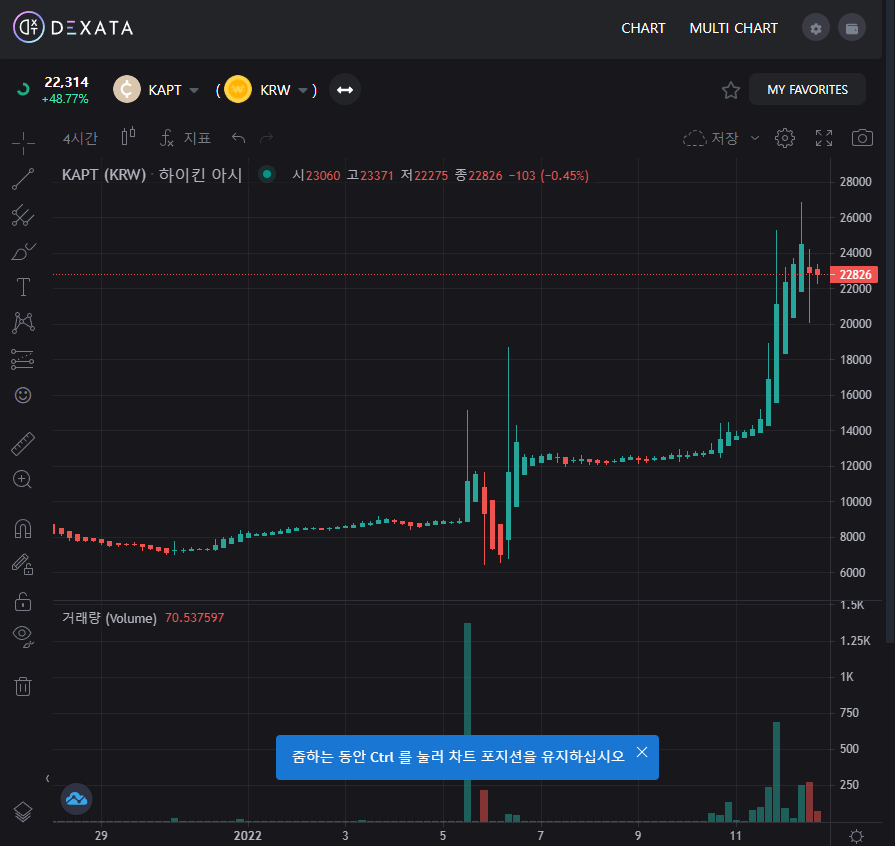 클레이튼 기반의 코인들 차트를 볼수 있는 덱사타(이렇게 읽는게 맞나?) 입니다.