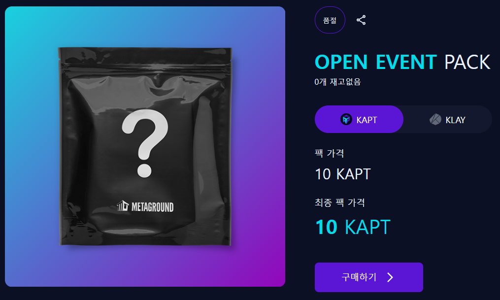 제가 메타그라운드를 알았을때는 이미 오픈 이벤트 팩은 품절이었는데요.