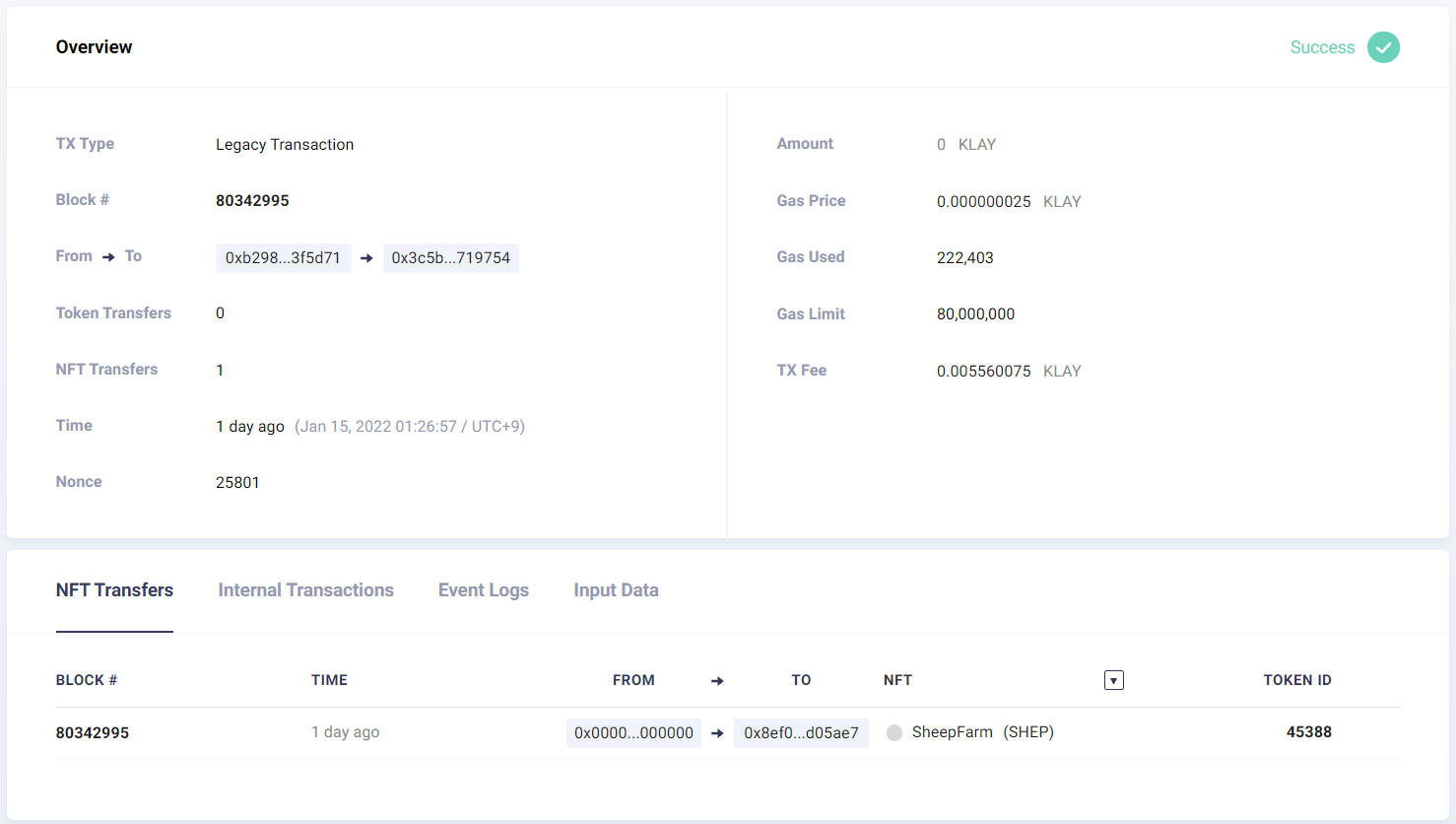 이건 한국시간은 아닙니다. 9시간을 더해야 하구요. 은근히 더하기 하기 귀찮은데 다행히 날짜를 클릭하면 클레이튼스코프 사이트로 연결됩니다.(https://scope.klaytn.com/)