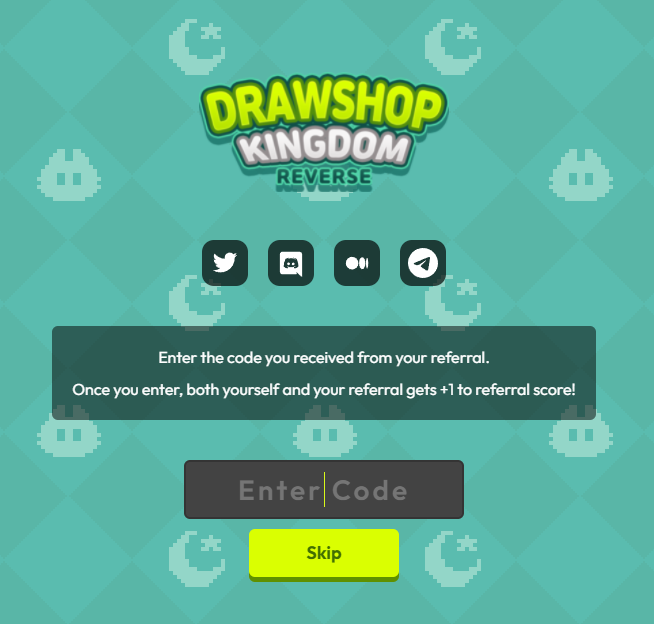 6. 드로우샵킹덤 디스코드 주소(Discord: https://discord.gg/drawshop)와 꼭!! 레퍼럴 코드를 함께 전달주셔야합니다! 추천받은 지인이 레퍼럴 코드를 입력해야 레퍼럴 점수 +1 점을 받으실 수 있어요!)