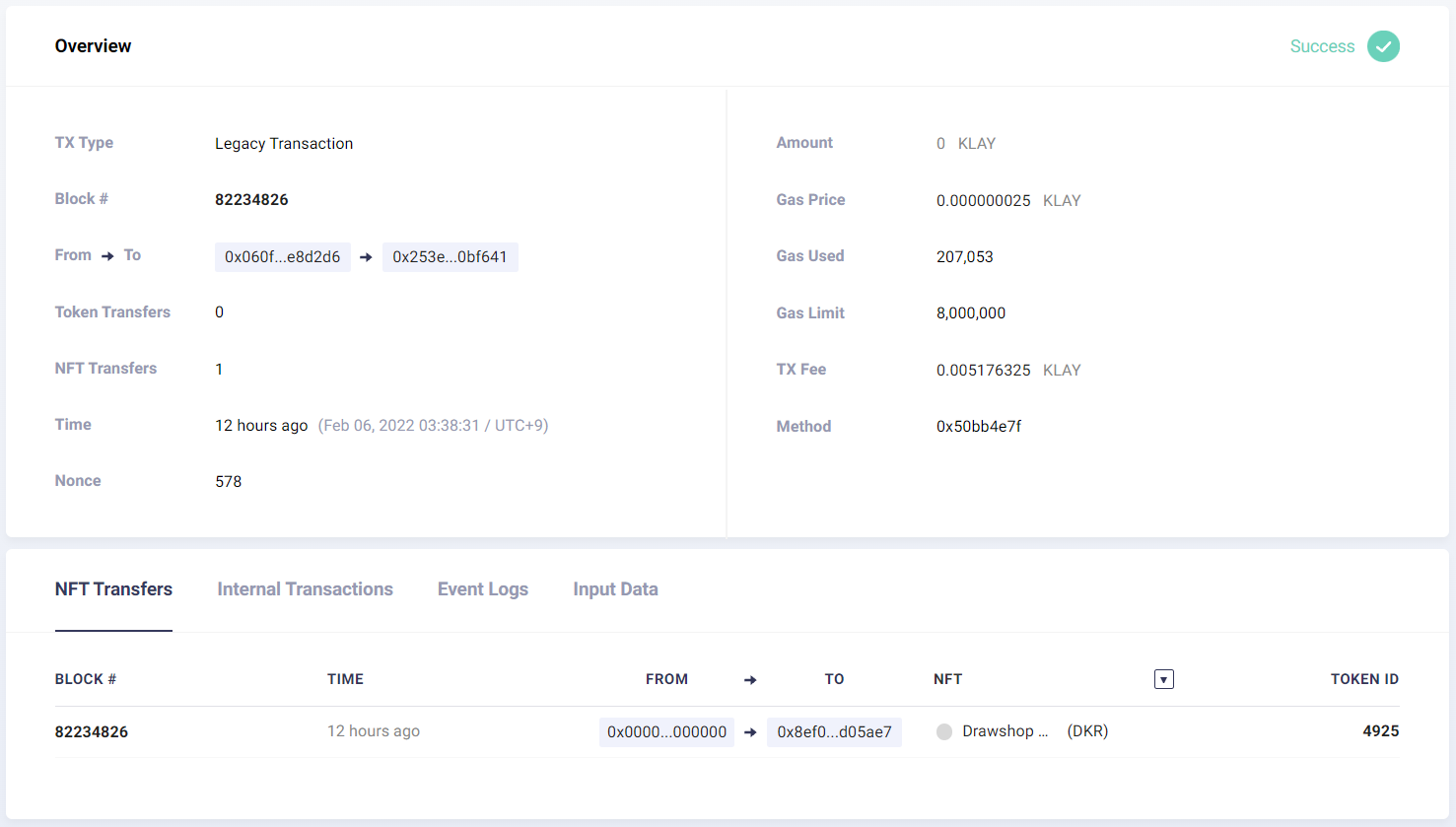 2022년 2월 6일 새벽 3시 38분(한국시간)에 들어왔네요. 이벤트 기간이 2022-01-31 18:00 ~ 2022-02-05 24:00 (한국시간) 이었으니까요. 이벤트종료후 빠르게 지갑으로 전송해주었습니다.