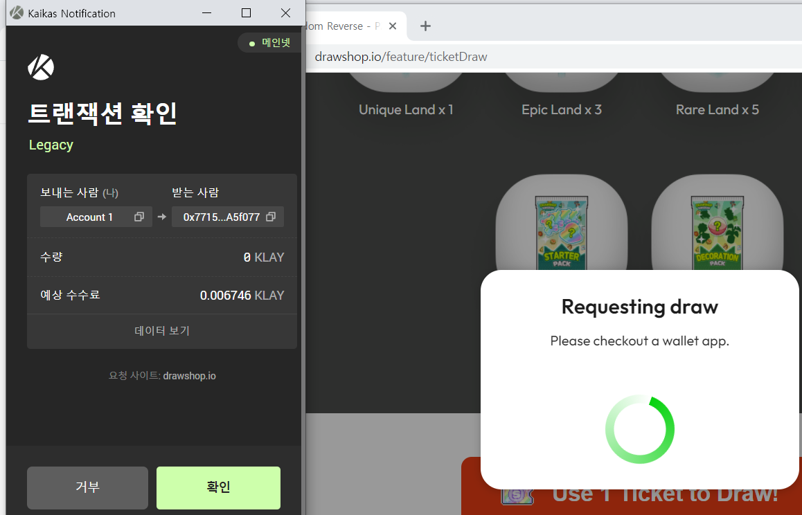 그런데 이 가챠 티켓이 아직은 드로우샵서버에 개인지갑주소로 구별되어 배분된 데이터일 뿐이지만 스크롤을 내리면!!!