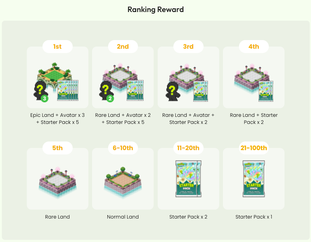 여기에 추가로 이벤트가 하나 더 있습니다. 합산한 점수순으로 등수를 매겨서 등수에 따라 드로우샵킹덤 NFT를 더주는 이벤트인데요. 위에 이벤트와 중복으로 받을 수 있어요. 상품구성은 이렇습니다.