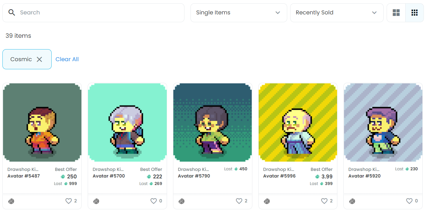 코스믹 999 Klay(현재 매물 가장 싼 5개는 1100~2600클레이)