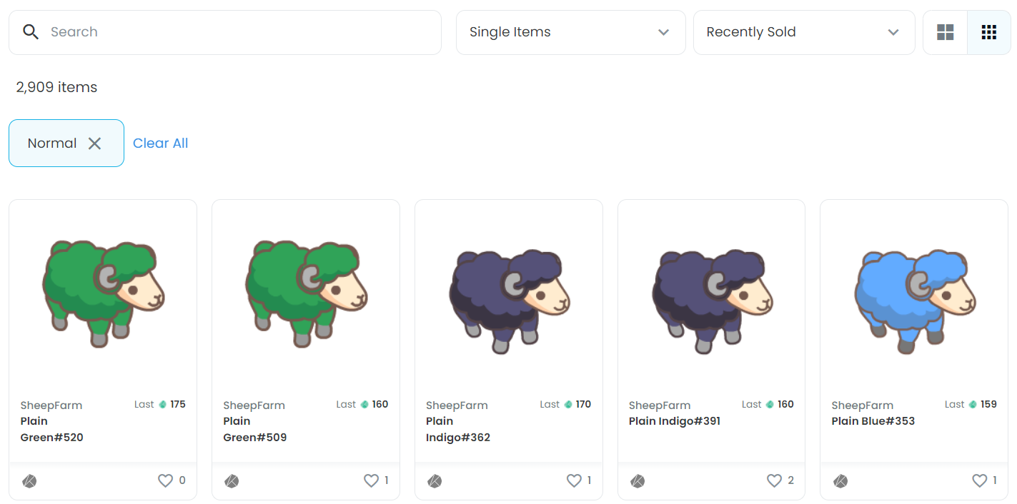 혹시 레어 이상이 떠준다면 대박이고 일반양이어도 손해는 아닌데다가 데코아이템이 6개나 들어있습니다. 데코 아이템도 지금 가격이 꽤 높습니다. 오픈씨에서 직접 가격 확인해보세요 https://opensea.io/collection/sheepfarm