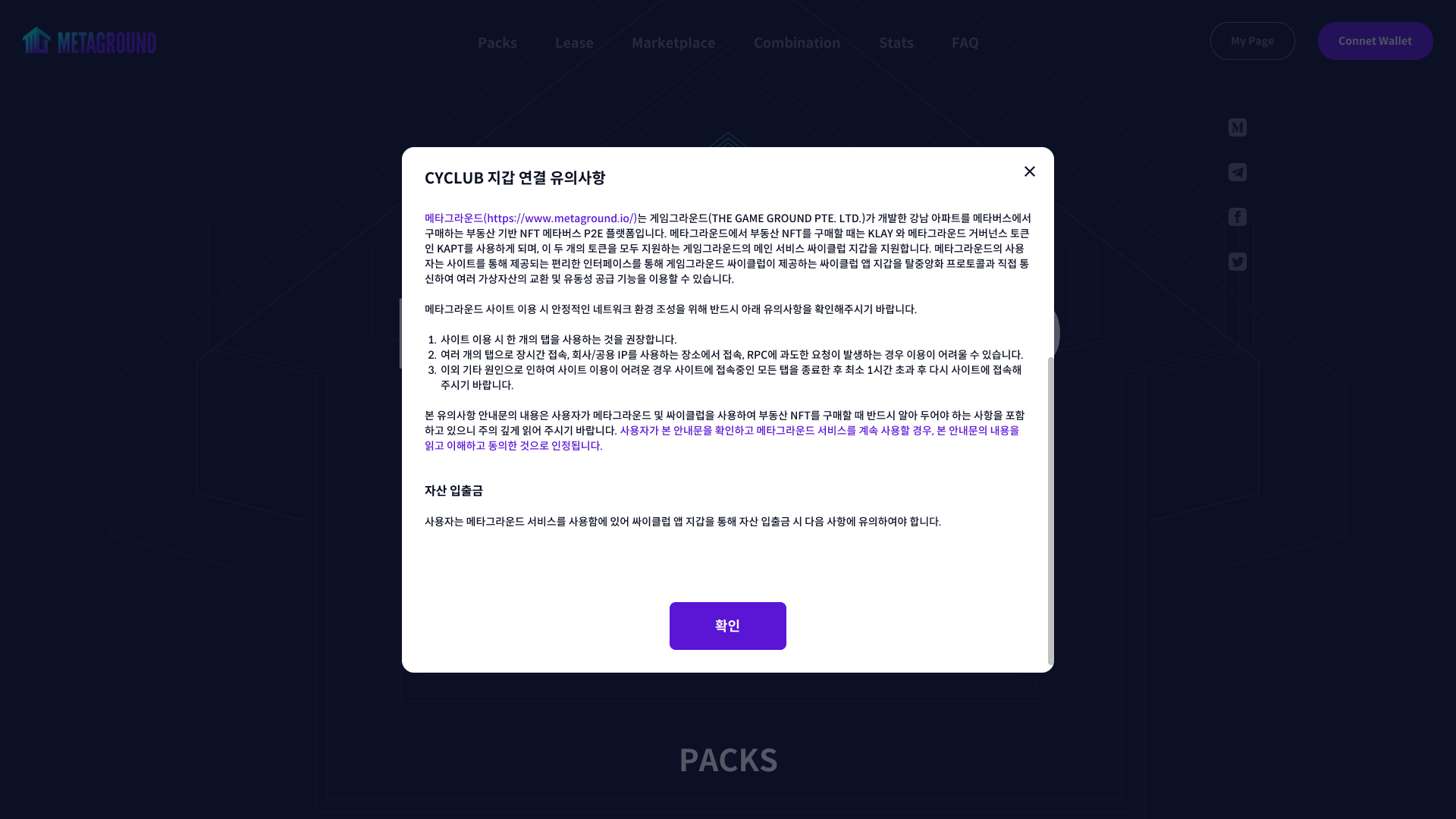 메타그라운드라는 부동산 NFT 기반 P2E 라는걸 접해보고 이것 역시 NFT 공부의 일종으로 수업료를 내봤습니다. https://www.metaground.io/ 일단 이게 뭐냐하면 메타그라운드라는 서비스에서 카드팩을 팝