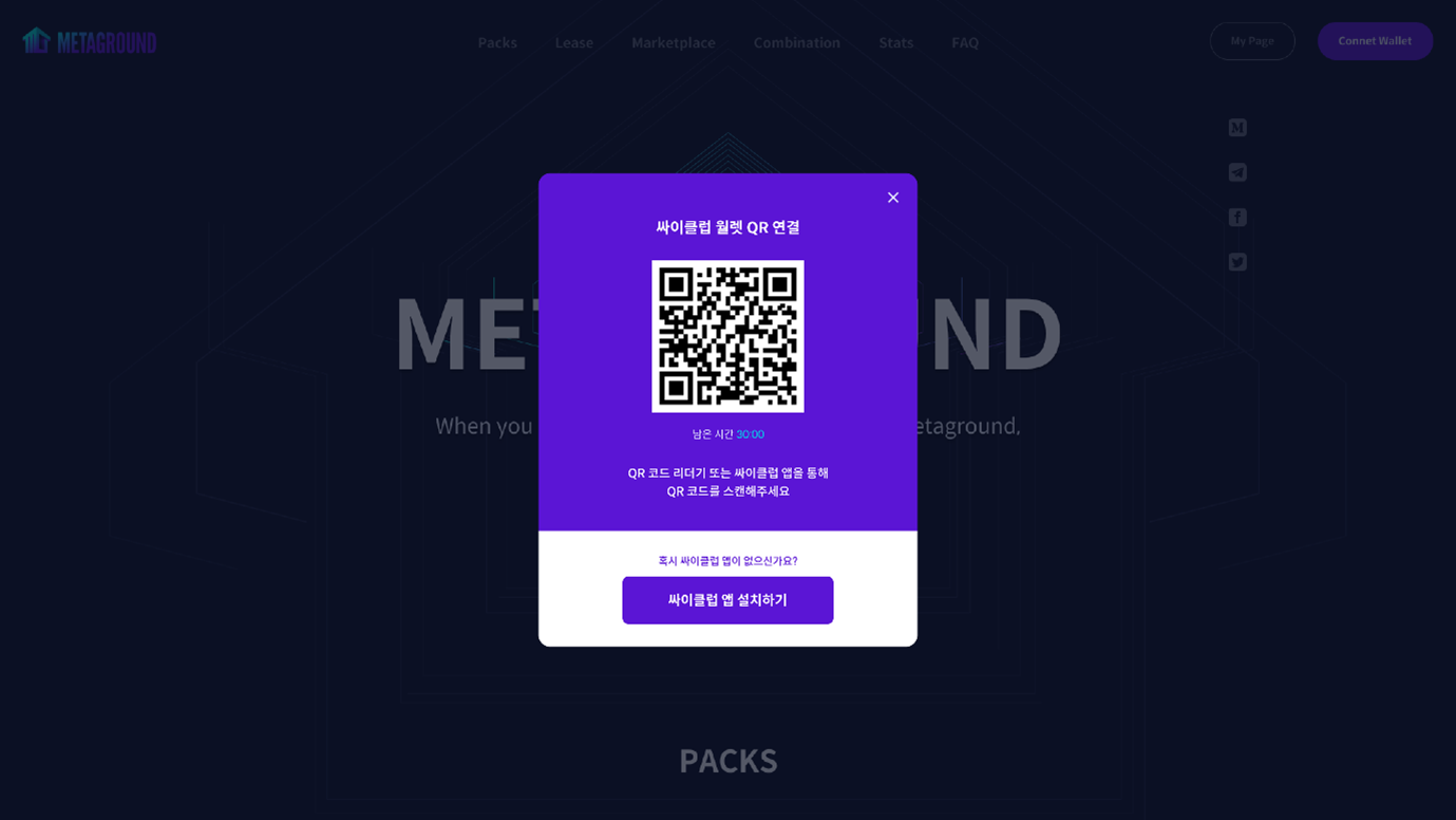 첫 지갑 연결이 회원가입 입니다. 현재는 싸이클럽 지갑만 가능합니다.