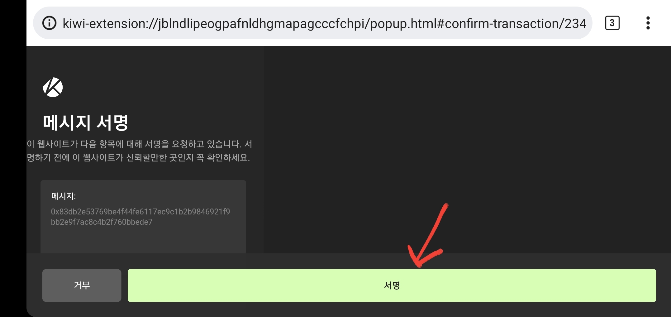 이제 메시지 서명화면이 나오면 서명을 눌러줍니다. 그럼 쉽팜에 접속됩니다!