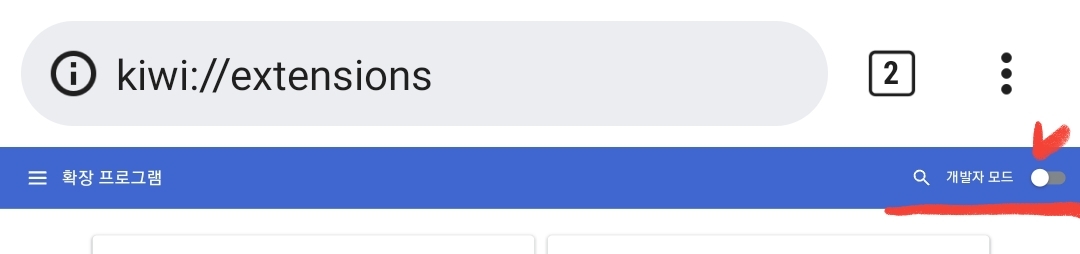 3) 그다음 아래화면처럼 나오면 개발자 모드를 활성화해 줍니다. (클릭 하면 동그라미가 우측으로 움직여서 활성화 됨)