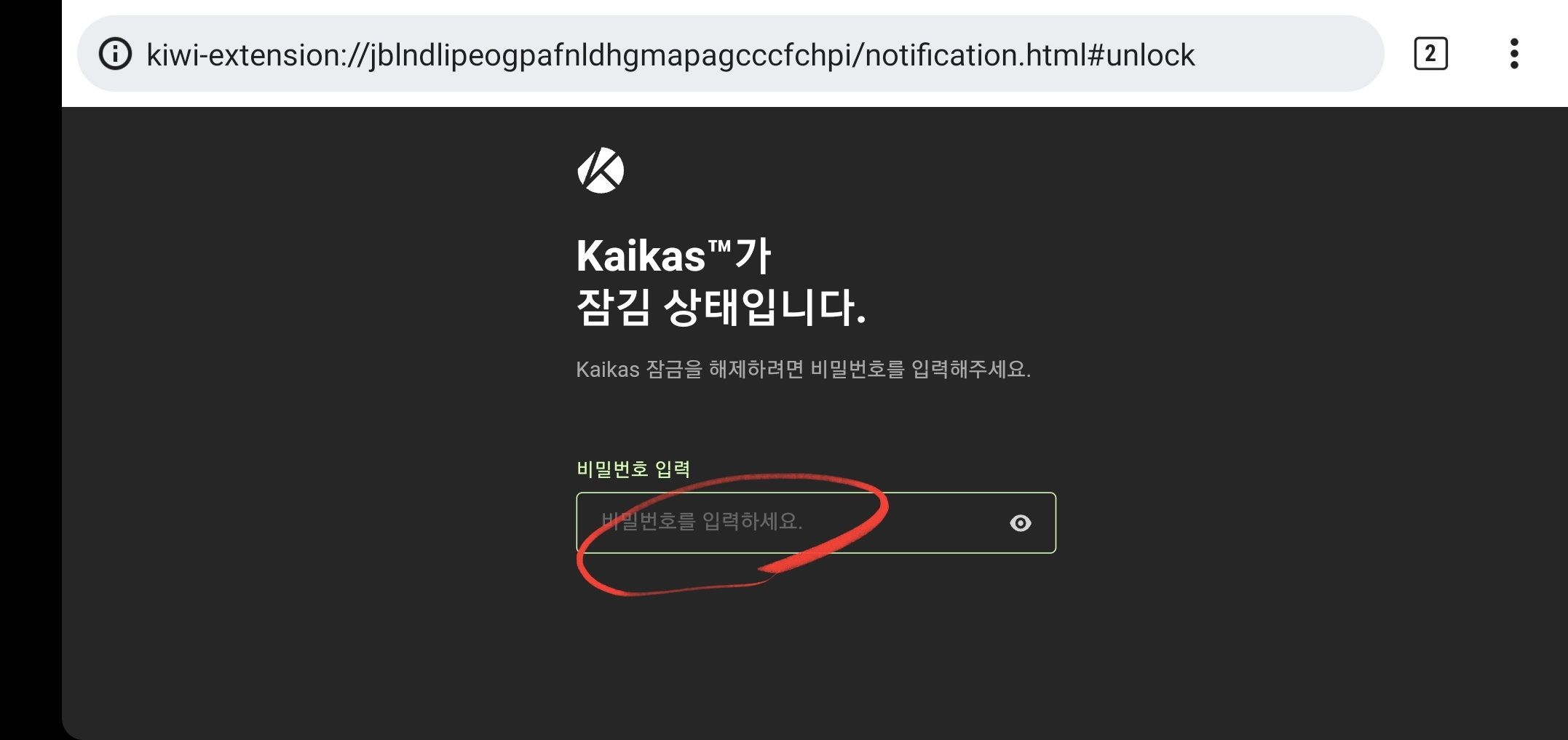 카이카스 지갑 잠금상태를 해제해줍니다.