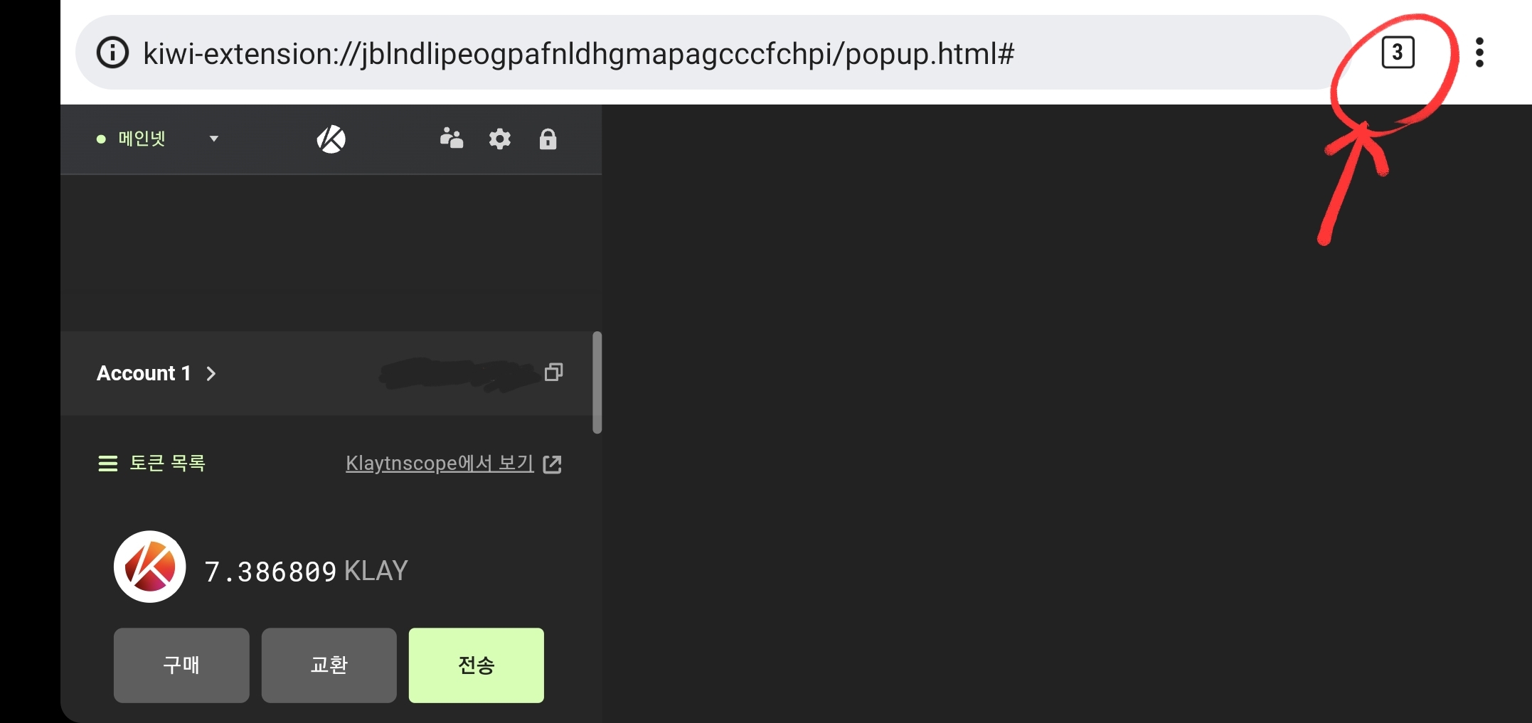 그런데 말입니다. 화면이 이모양이네요? 이게 PC가 아니다 보니까 확장프로그램이 알아서 없어지지 않고 브라우저의 탭하나를 다 써서 그렇습니다. 아래 화면에 3이라고 써있는게 인터넷창이 3개 열려있다는 뜻인데요. 저걸 누르면