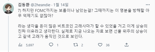 “어제 오늘 비트의 미친 상승은 딱히 이유가 없다. 근데 내가 크립토 씬에 들어와 경험한 바로는 이유 없는 상승은 사실은 반드시 이유가 있더라... 두서 없이 떠오르는 생각들을 좀 적어보면...