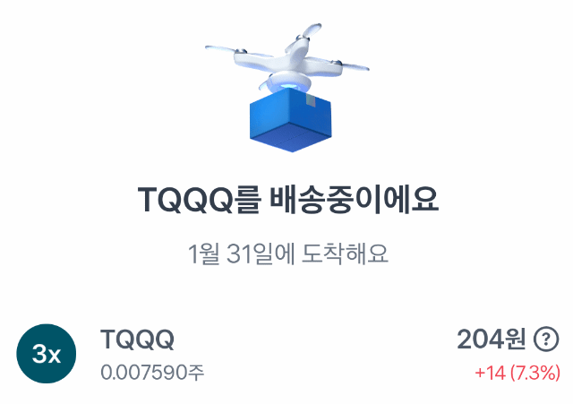 전 지금 확인해보니 당첨 당시 190원어치 준다던 TQQQ가 그새 올라서 204원이 되어있네요.