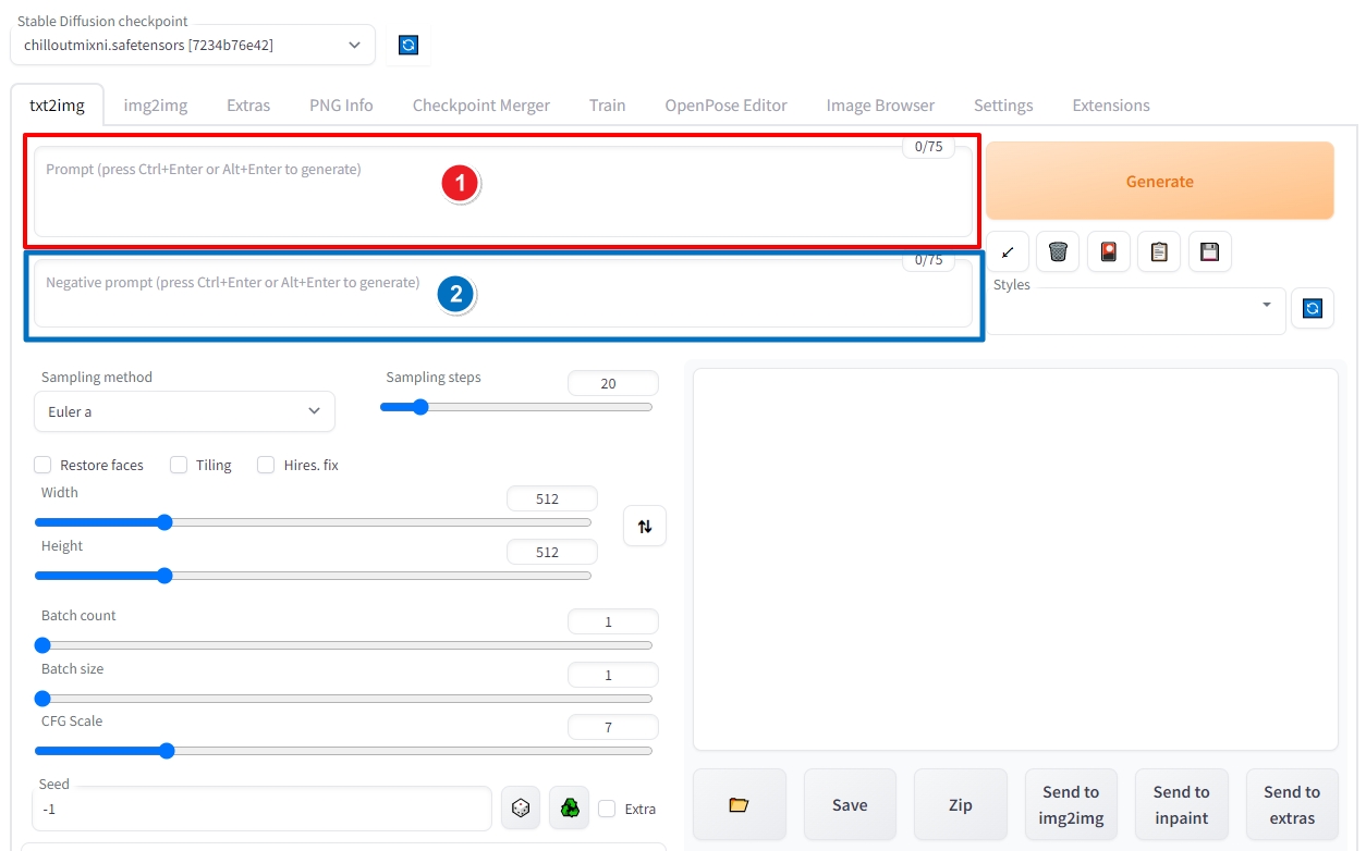 7. prompt를 적고 generate를 눌러 이미지 생성