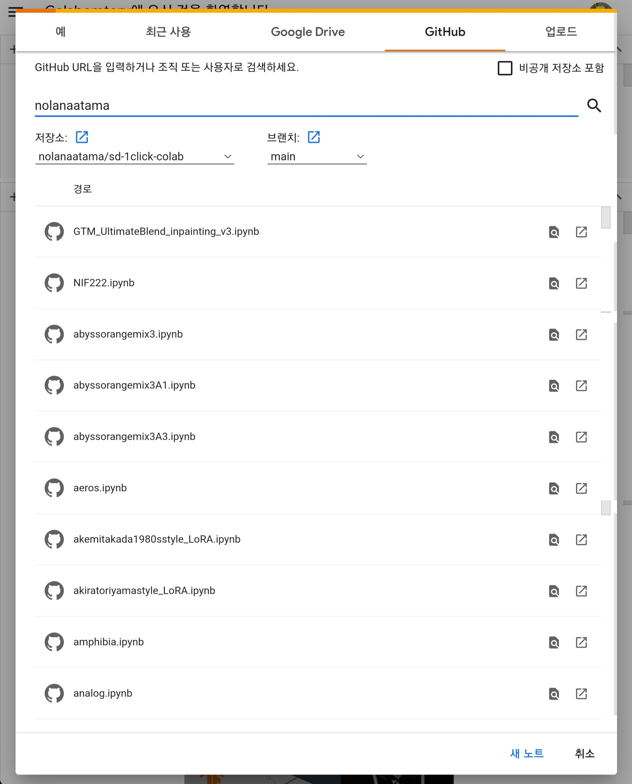 4.여러가지 파일들이 보이는데 스크롤을 내려서 chilloutmix.ipynb 파일을 선택합니다. (파일명을 클릭합니다)