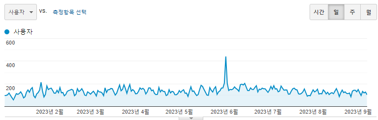제 블로그의 구글 애널리틱스로 본 사용자 변화입니다. 즉 방문자 수인데요. 저는 워낙 한달에 하나 포스팅할까 말까 하긴 하지만 기존 누적된 글들이 있기 때문에 100에서 160 사이를 왔다갔다 합니다. 중간에 포스팅한 글 하나가 튀긴 했지만요. 티스토리 자체 방문통계에서 보는 숫자와 거의 동일합니다.